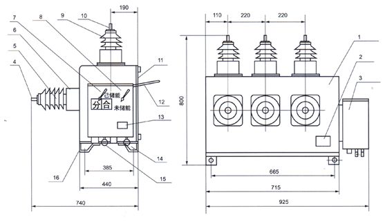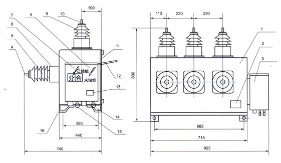 15、手动合闸拉环 16、接地螺栓