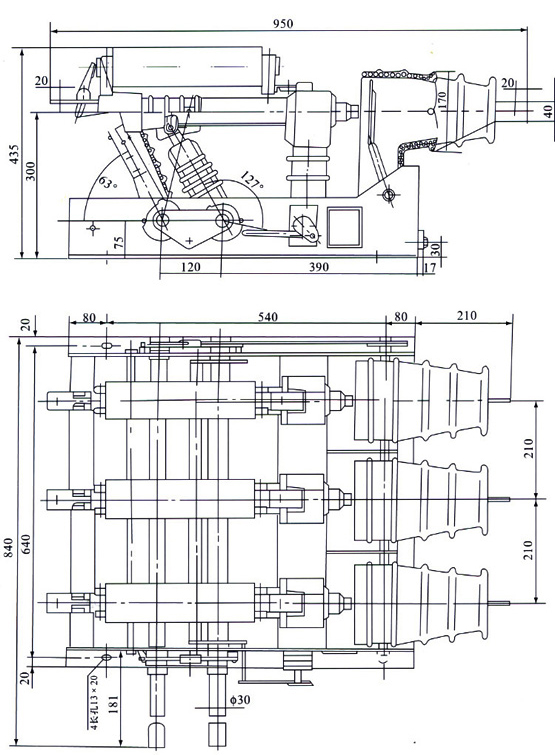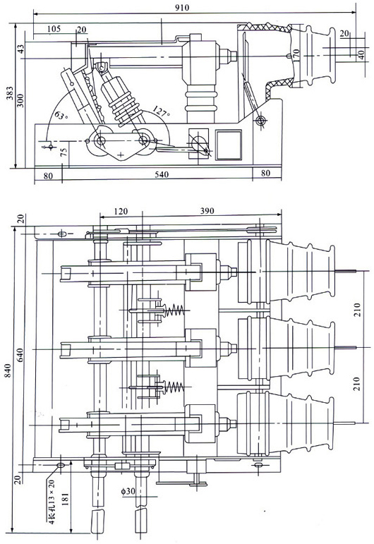It is a three phase H.V switch equipment of 12KV 50Hz for breaking or closing load current. No-load transformer cable charging current and closing short-circuit current.The load switch with earth switch can bear short-circuit current.