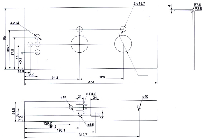 电动操作机构开孔尺寸图 The size diagram of motor operating mechanism |